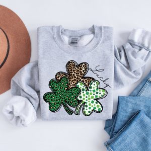 Leopard Shamrock Sweatshirt, Womens Lucky Shirt, St Patricks Day Sweater, St Paddys Day, Saint Patricks Day Shirt, Irish Gift, Clover Tshirt